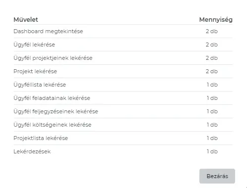 - részleges aktivitás (pl.: projekt rögzítés), az ezzel töltött idő hossza nem ismert, de az adott időpillanatban interakció volt az alkalmazásban;