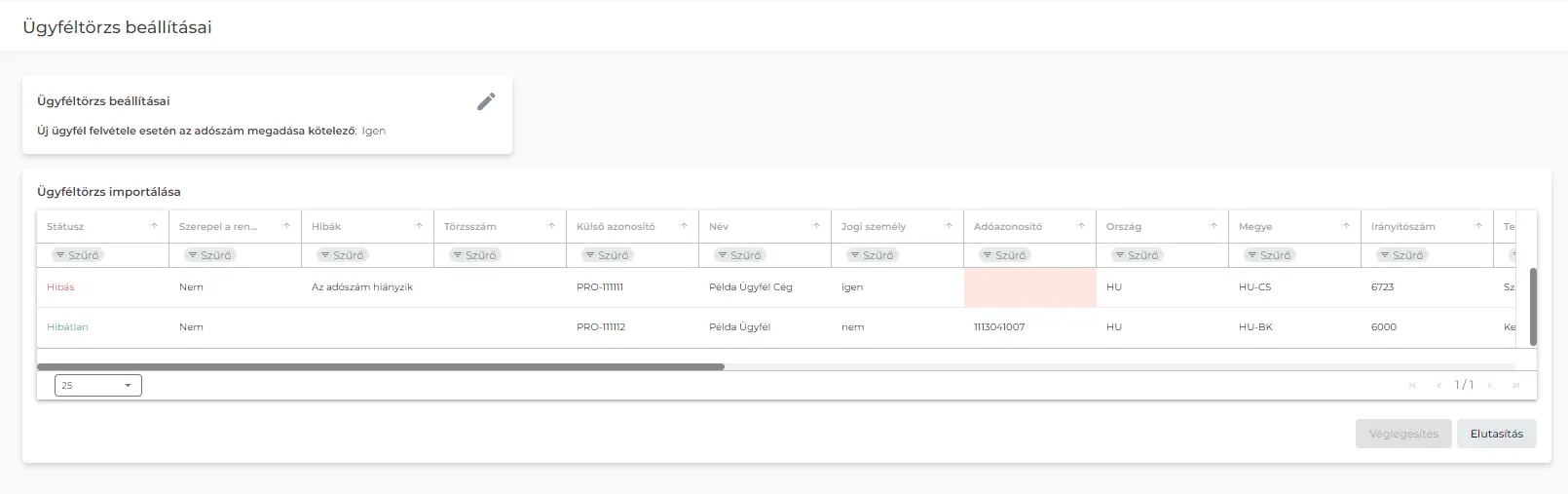 Ne feledje: Amennyiben importáláskor egy már a rendszerben létező törzsszámmal új ügyfelet importálna, akkor a rendszerben lévő ügyfél adatai frissítésre kerülnek az importált adatokkal.